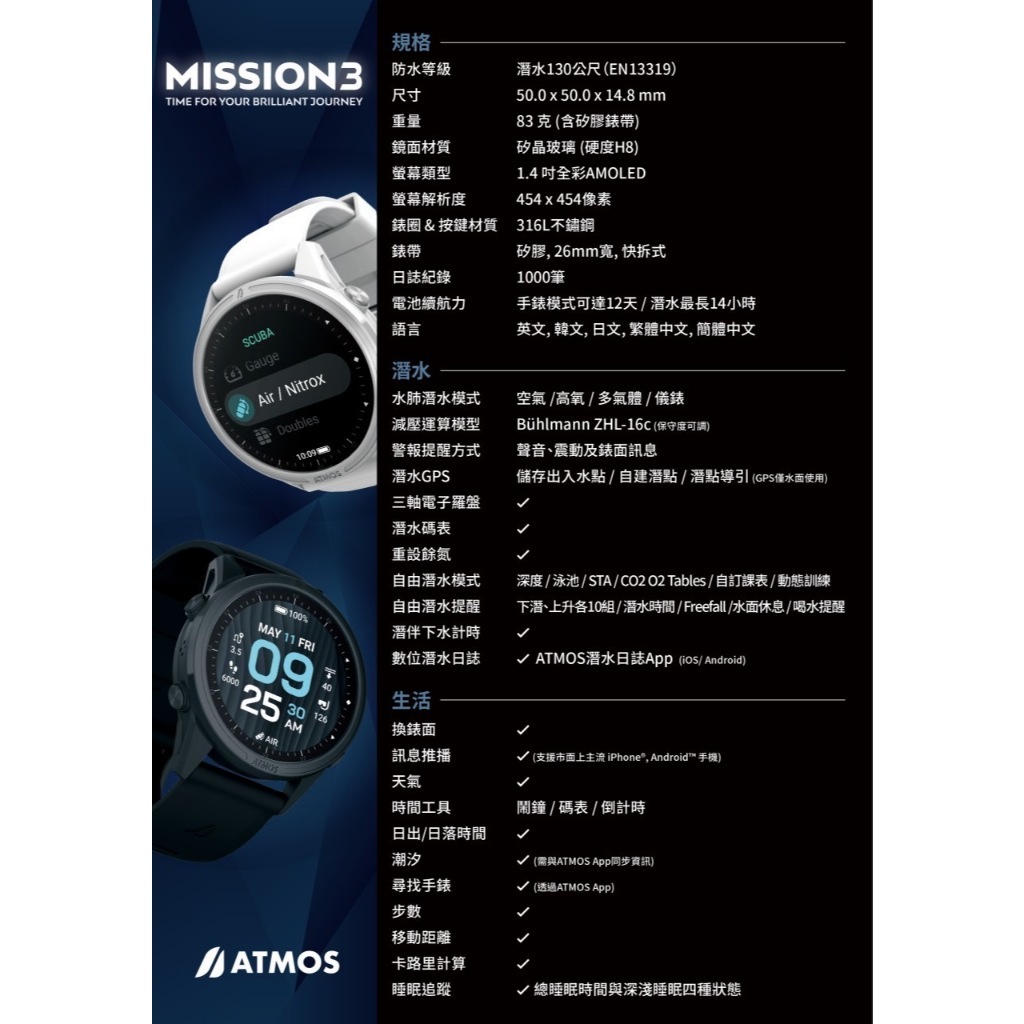 ATMOS MISSION3 潛水電腦錶+贈送毛巾衣