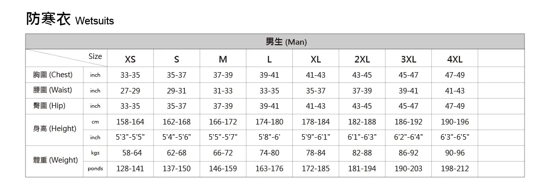 AROPEC 3mm 男款超彈性長袖長褲防寒衣 型號 : DS-5B39M-3mmES