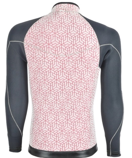 - 上衣下擺採用黑色Orca Skin反折內裡,形成防水的Skin Seal的緊密狀態,讓水花不會從上衣的下擺濺入或滲進入身體裡面,可以持續保持身體的緊束和溫暖的狀態