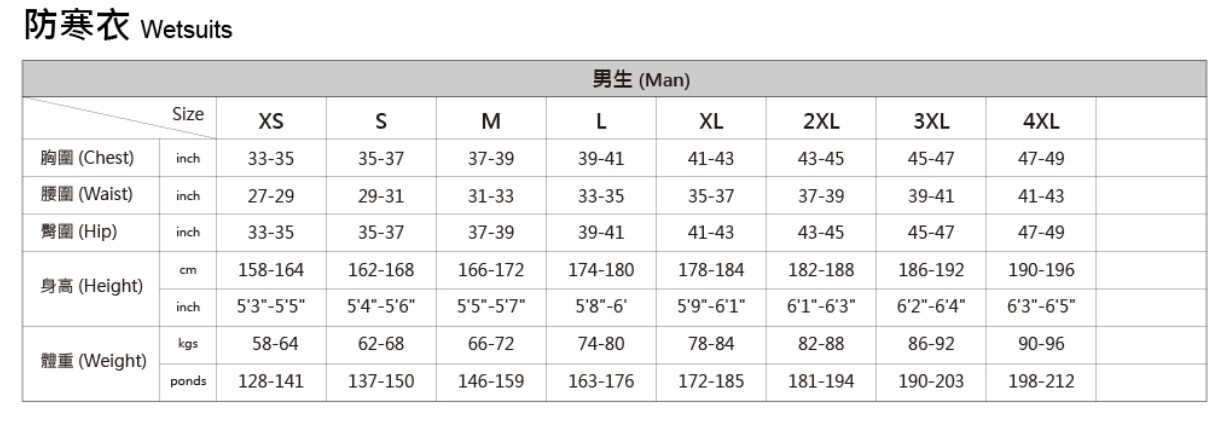 - 肩膀、腋下和長袖和長腿兩側、前膝蓋和後腿,採用超彈性光滑不沾水的AQ高級布料內裡,增加好穿好脫的方便容易度之外,讓活動更為順手和舒適
