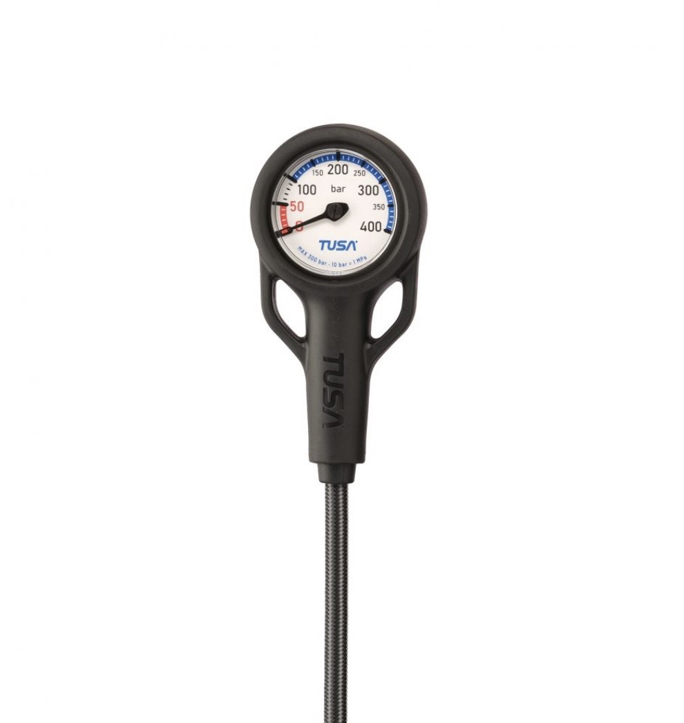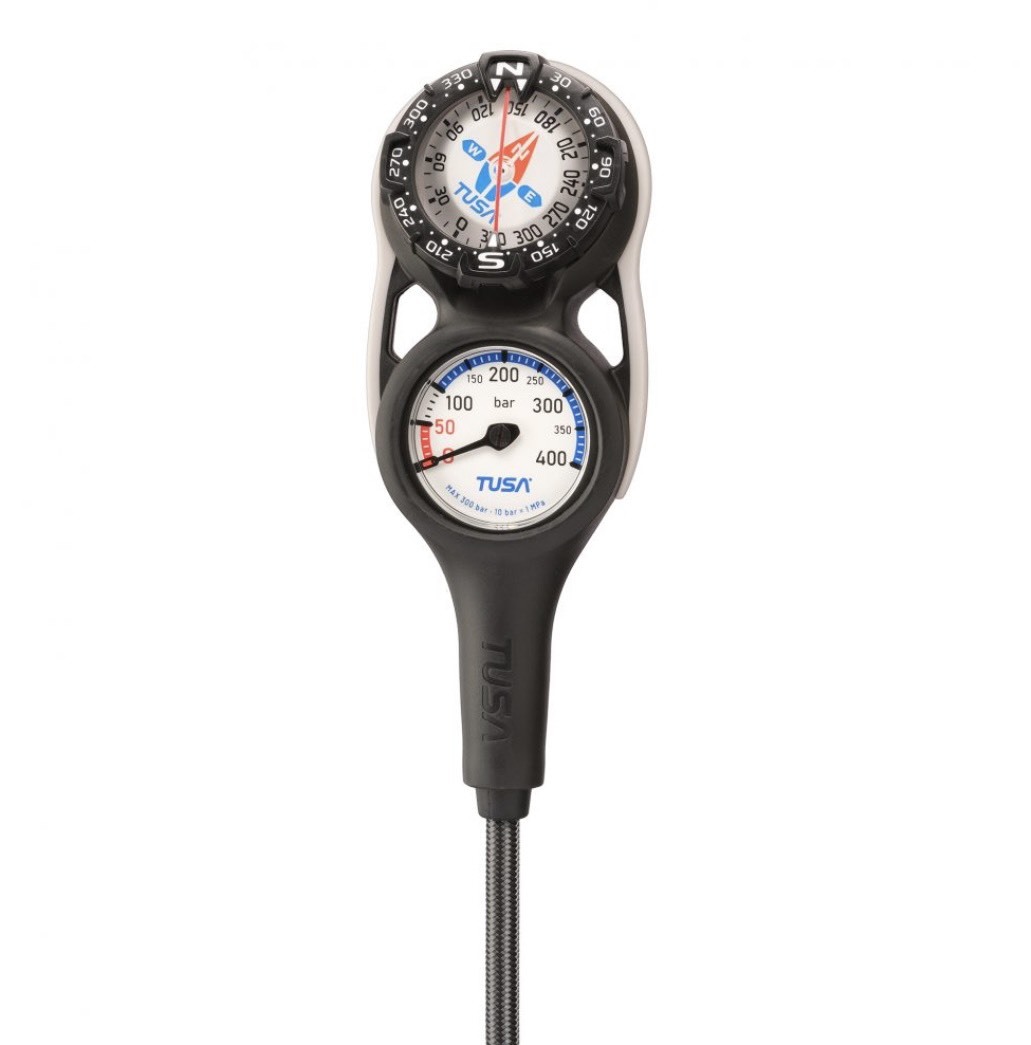 ‧ 簡單堅固的三用錶,包括了深度計,壓力表,及指北針 ( 於背面 ) 。