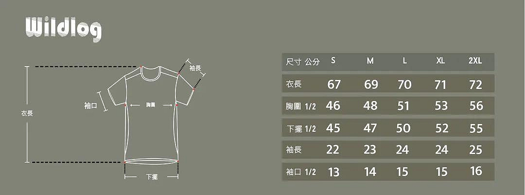 新的二個新色上衣和現行的「不期而遇」有相同的尺寸和版型,但是重新設計圖案,在身體正面有印上「WILDLOG」7個英文字母,以及7個森林底層容易見到的低矮花草植物,這類植被很容易為人忽略,但卻是森林生態系中不可或缺的關鍵角色,儘管這些小花小草遠不及高大喬木那般顯眼,它們卻總是自命不凡的在野地裡展現頑強的生命力。就命名為「自命不凡」吧!