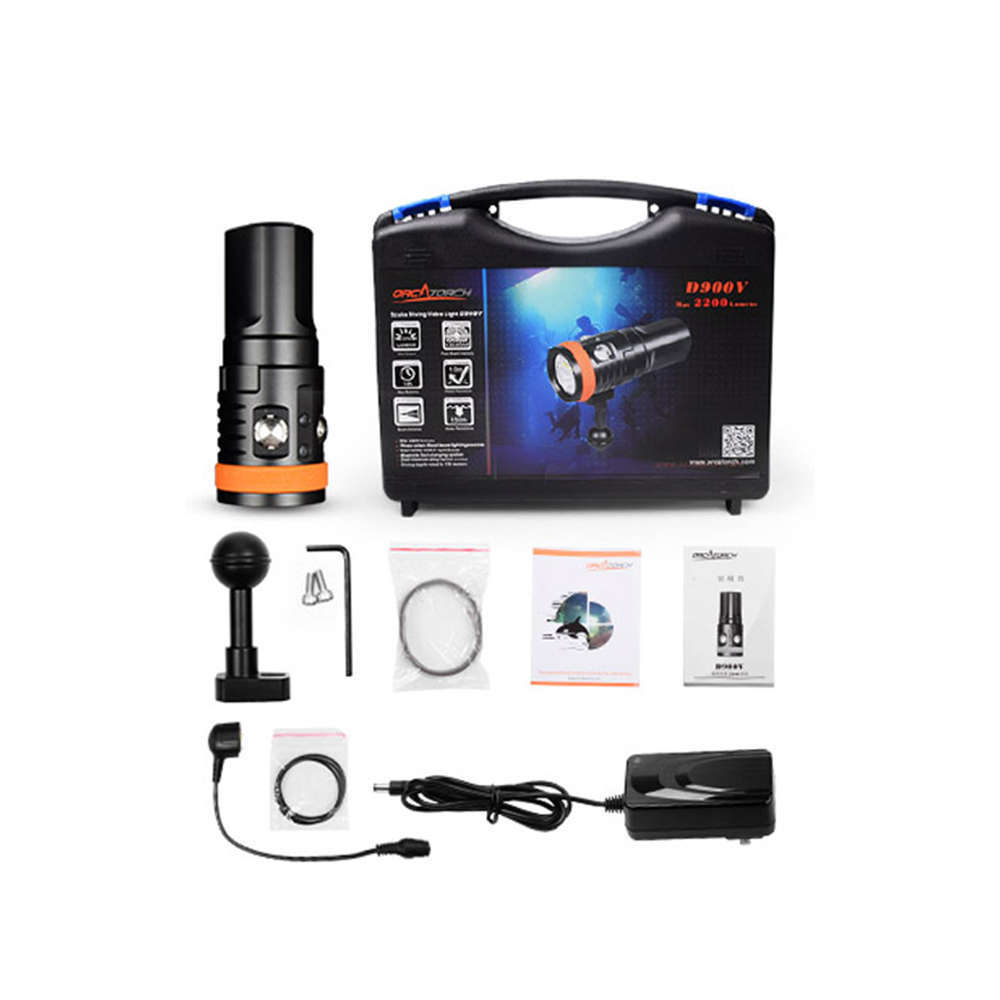 ORCATORCH D900V是一款專為水下攝影師訂製的攝影燈。單支電筒擁有紅光、UV、120°中白光、以及8°冷白光四色光源。行業首創磁吸式快充設計,讓您無需取出電池即可充電。鈦合金雙開關設計,獨立控制不同光源,同時其獨有的自動鎖定功能巧妙地避免了誤觸發的可能性。雙指示燈設計,隨心掌控使用狀態。
