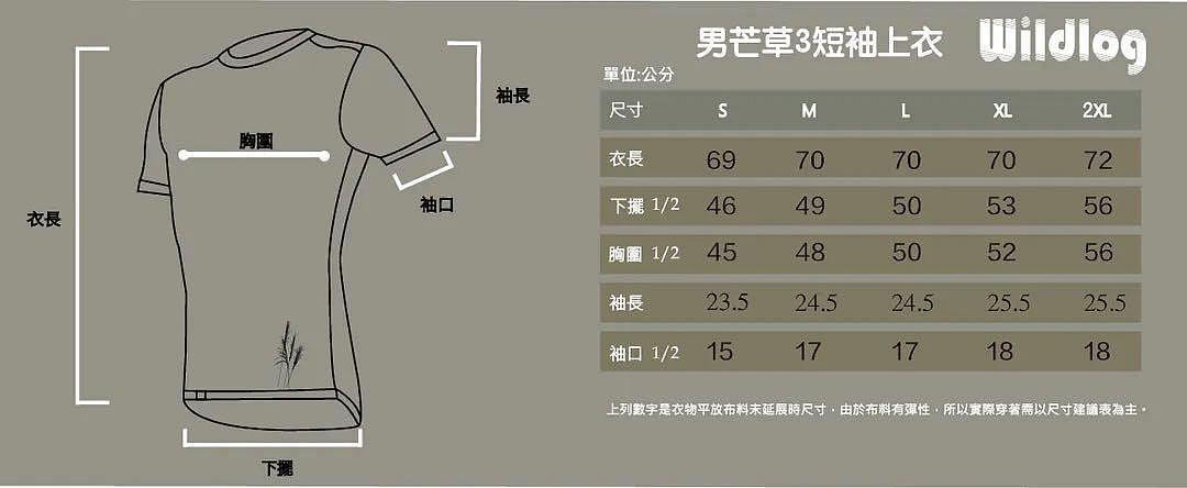 這款「芒草3」和原有的上一代「芒草」短袖上衣相較,差別是袖長增加了2.5公分,其餘版型、尺寸、用料等完全相同。